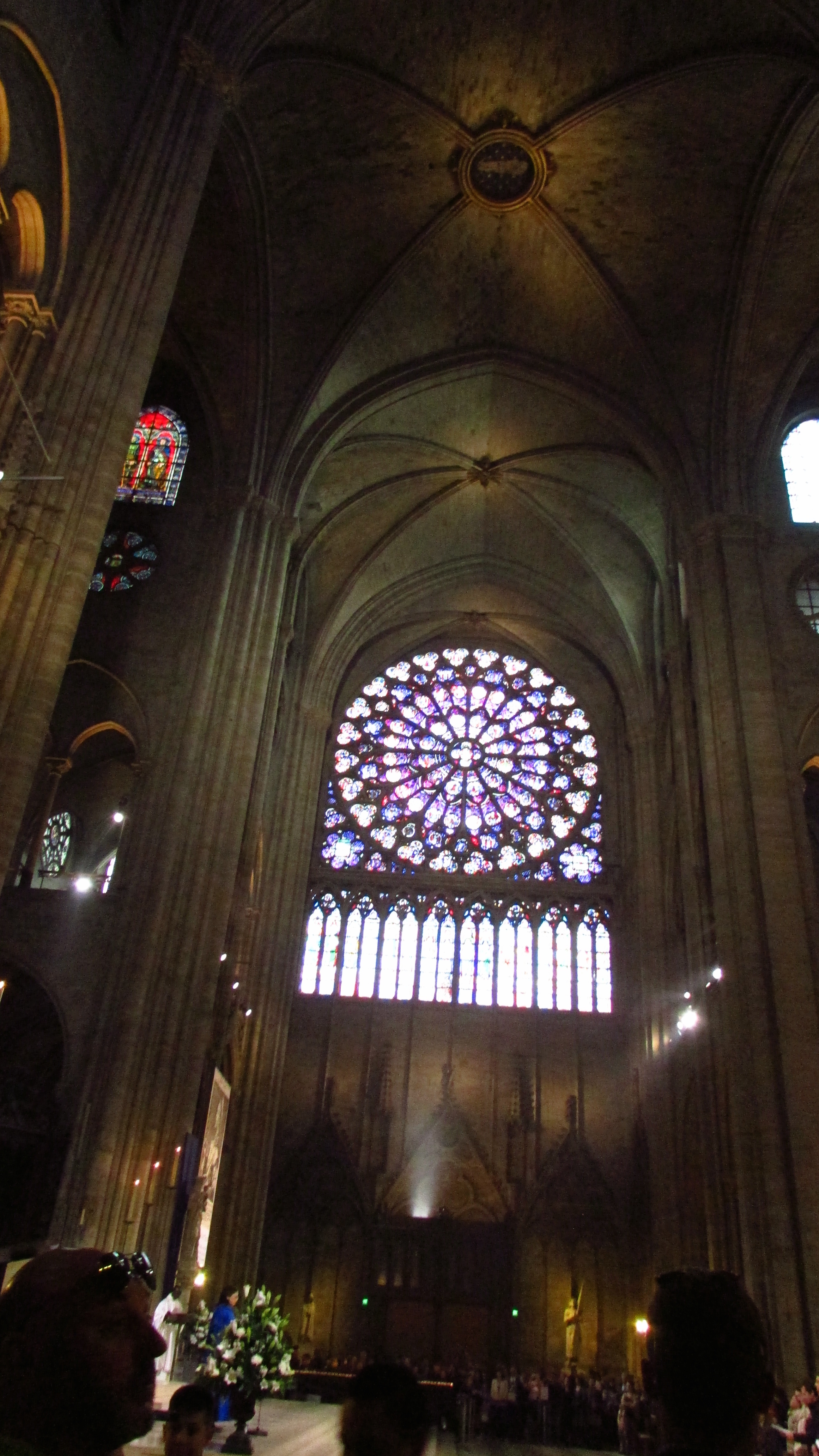 After some research, we decided on The Marais, the shopping part of Paris, so I’ve heard. We took the Metro to Bastille Station and saw the opera building there, then walked around for a bit, popping into whatever shops looked interesting until we came across a museum. We spent a good hour or two in there, and then we wandered around until we hit the Siene River. We could see the Notre Dame over the roofs across the river, and it didn’t look like it was too far, so we went there next. Unlike the last church, it didn’t have any stairs but it had a line of people waiting to enter. The line moved quickly and we soon got to see the beautiful insides of the famous cathedral.