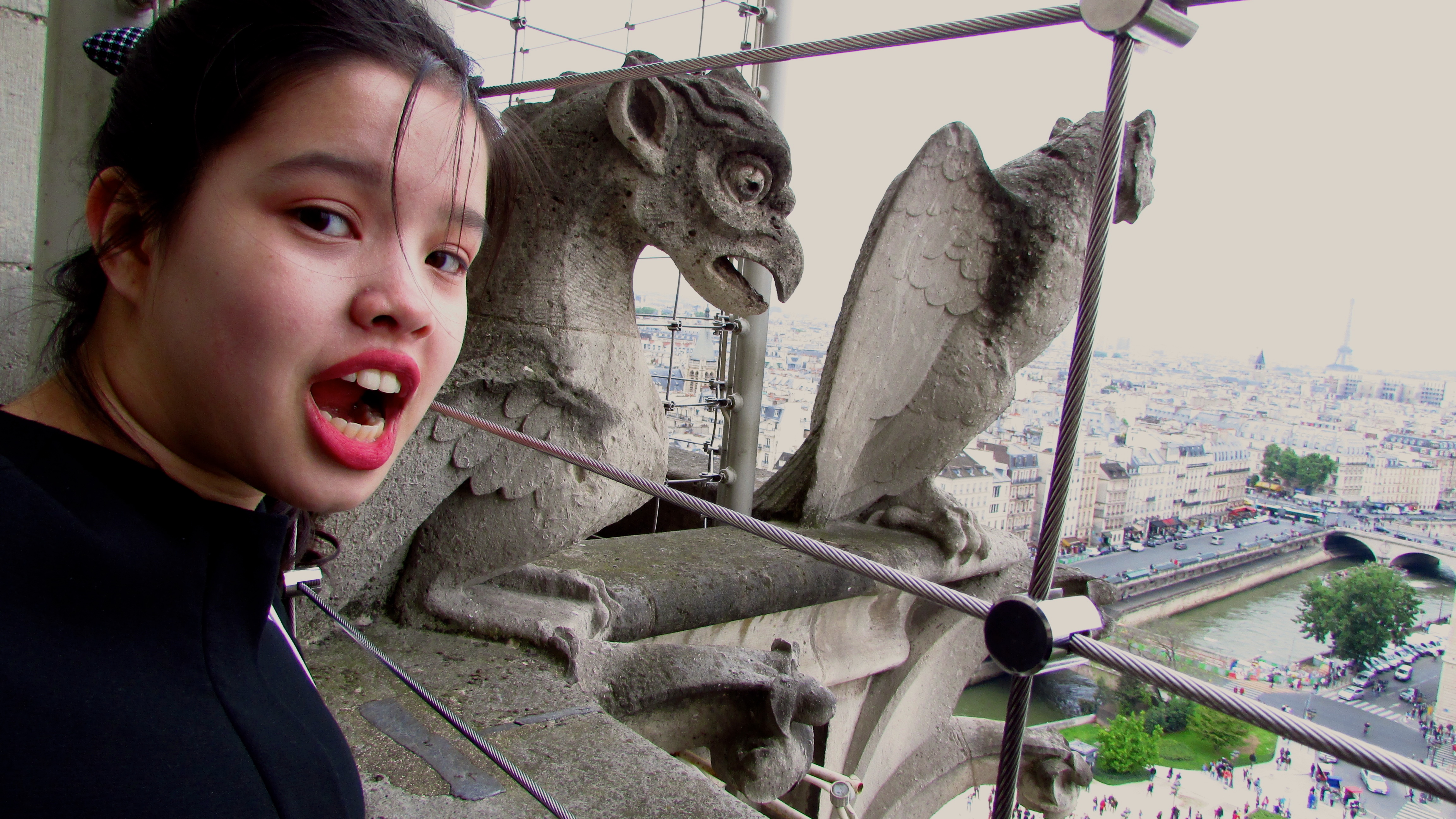 The wait was even longer than the catacombs, and it was cold all morning and most of the afternoon while we just stood there. I even wore a really cute pair of shorts, which was fine when walking, but while standing still, they did nothing to protect me from the wind. Genius. But we had crèpes, the view was amazing, and so was getting to see architectural details of the cathedral, so it was worth it.