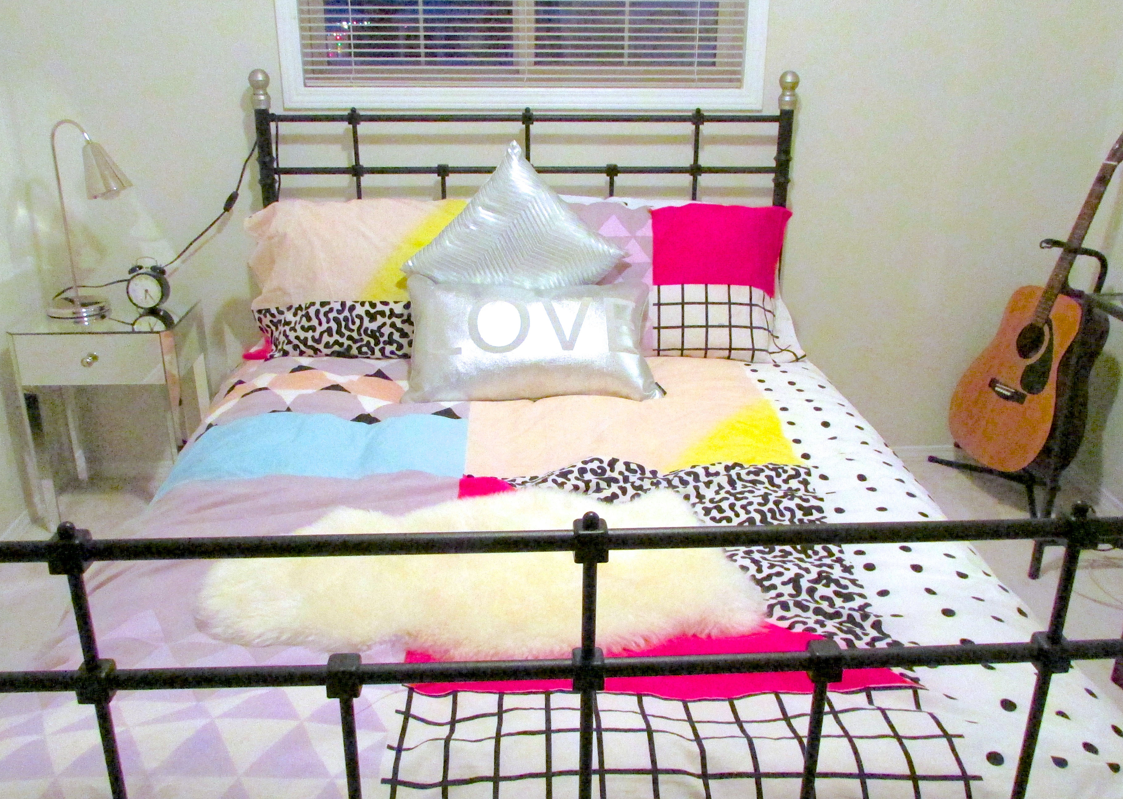 Last August, I was presented with a new bedroom and the challenge of decorating it within a budget and a simple set of rules: I can’t use black paint, I can’t replace the carpet, and I have to do all my own painting.