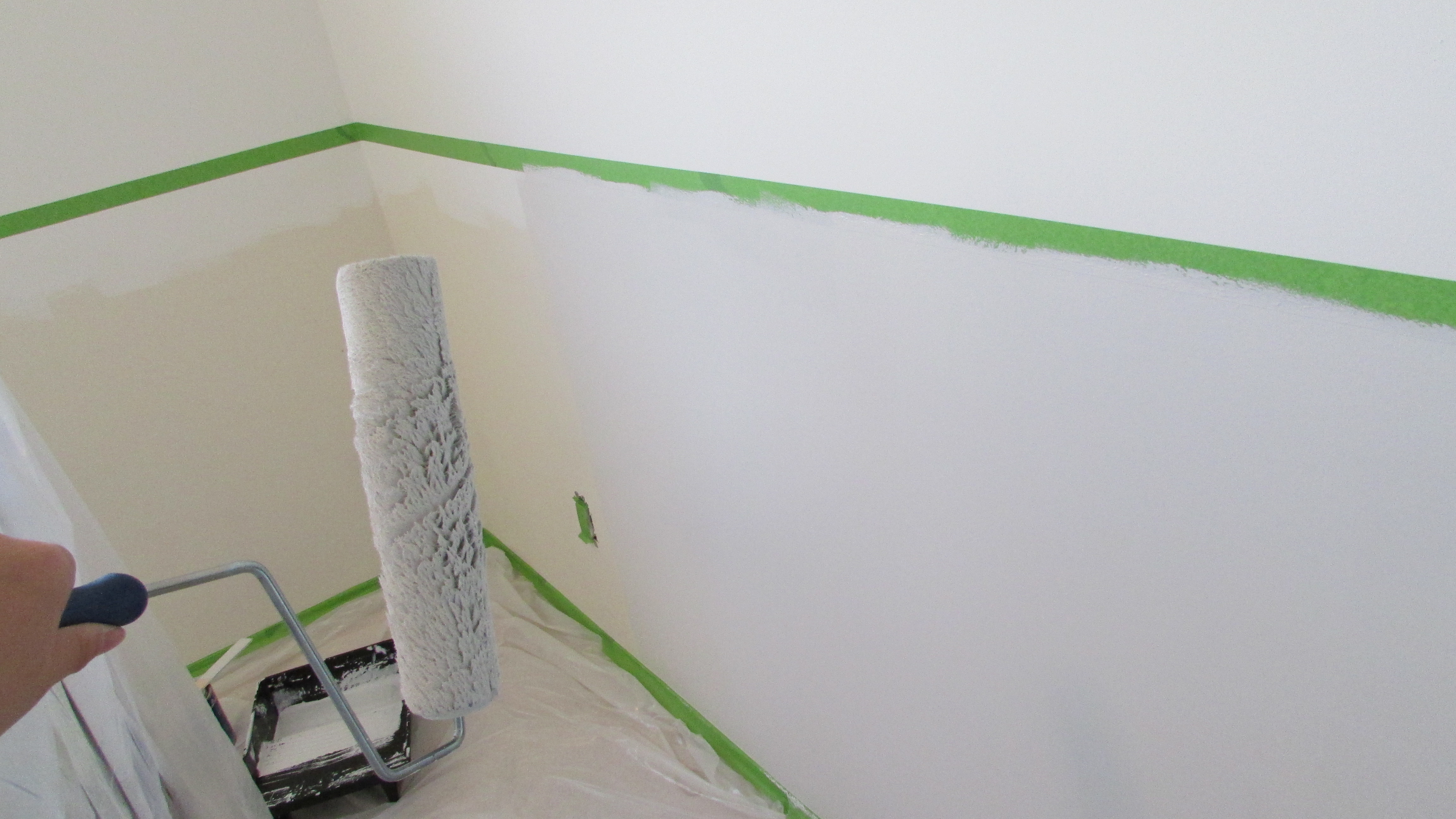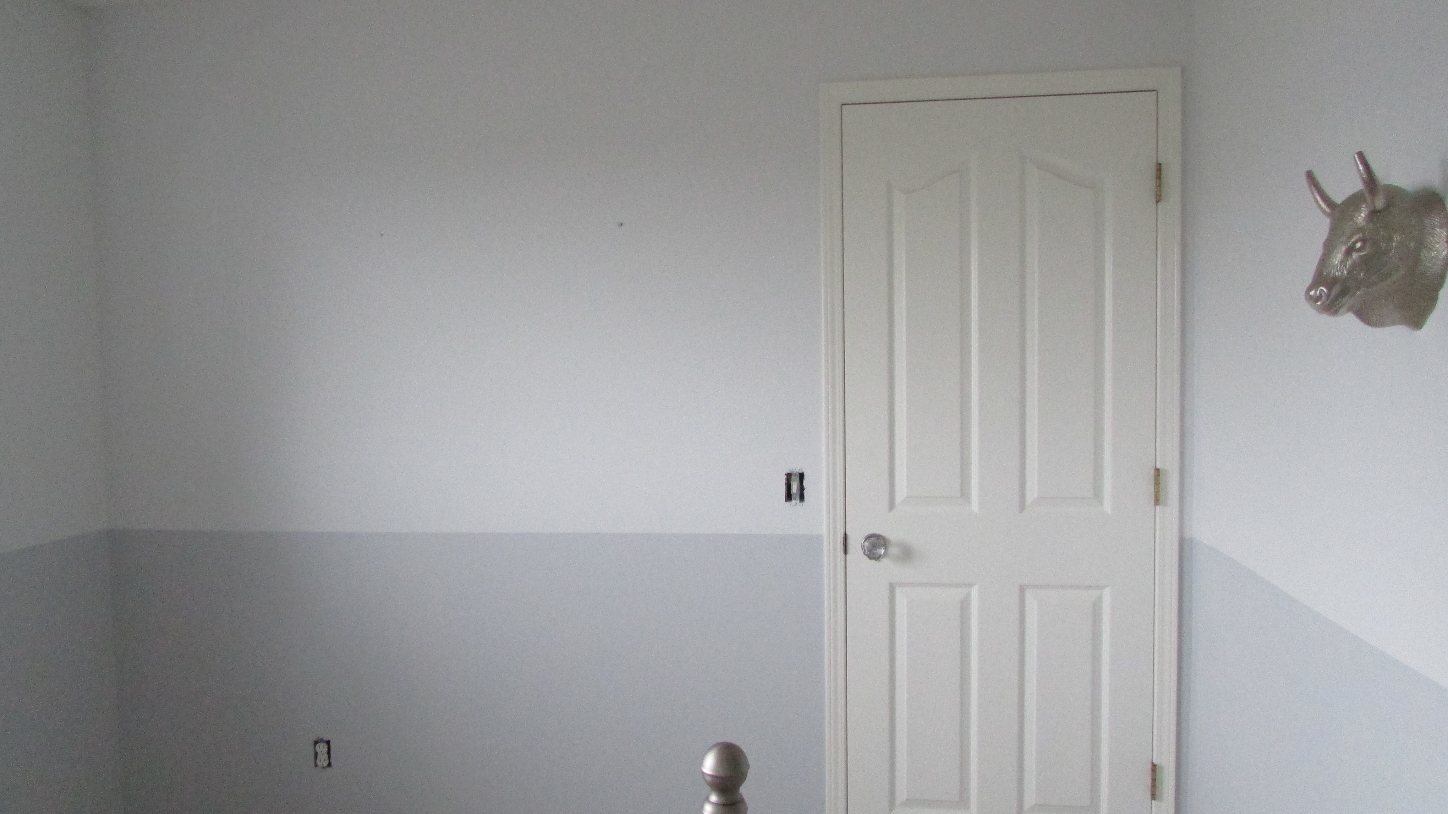 I painted the walls white and grey. The top 60% is Ultra White from Benjamin Moore and the bottom 40% is Grey Cloud also by Benjamin Moore. I did the white first, taking the paint below where I planned to start the grey. After two coats and waiting for it to dry, I taped a stripe of tape at 3 feet. I had planned to put it at 4 feet, but I’m glad I did three so it feels more like I’m wading through the grey rather than drowning in it. The colours compliment each other far better than I had hoped.
