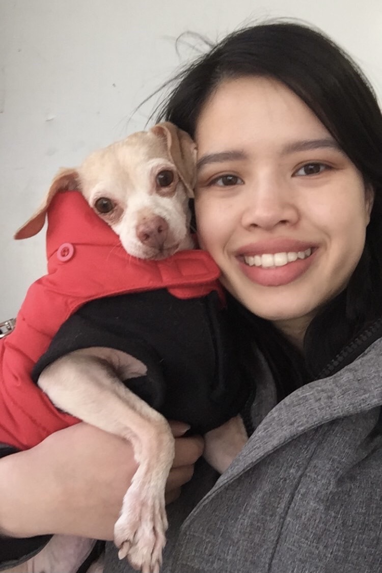 The one before her, a pink 7yo chihuahua, had reached me a different way. I went to pick her up from her home in an owner surrender. One time on Halloween when people were going by in their costumes, I’d dropped her leash and she went nowhere. I didn’t know what her history was from before the year she spent with her previous owners, but she seemed to know too well about the precariousness of having a human. Her previous owner had told me she didn’t have separation anxiety, and maybe she hadn’t then, but she did when she was with me. When she got adopted and it was time to go, she watched me pack her things with confusion. I took her with me on the first trip to the car, carrying a giant bag of dog food that had been in a closet. She wasn’t fed from that bag and I don’t think she saw it as hers. On the second trip I took out her kennel, filled with all of her things except her bed, which was too big. She grew apprehensive when she watched me put her things in the car. When we returned to the house again, she lay down on her bed which I’d left near the door, looking up at me with those pleading eyes. It took a lot of prodding to get her to leave it, and then, when I picked it up, she tried to go deeper into the house. She normally loved going out for walks, but there I was with her bed in one hand and her leash in the other, and she pulled at the end of it, not to go outside but to stay inside. She went for the kitchen, the hallway, anywhere but out that door. When I crouched to beckon her, she flattened herself to the floor to avoid being picked up. Finally, I let go of her leash and allowed her to bolt farther into the house and out of my sight. She knew what was happening. She was about to lose her human again and she didn’t want to go through with it. I couldn’t explain to her that she’d go live with the couple she’d loved so much during the meet and greet. All I could do was close the door and sink to the floor for a little cry. She was the gentlest little dog and barely barked. She did not deserve to have gone through what she’d gone through. And while I was crying on the floor, she returned, cautiously, and came to sit with me. But when I’d collected myself enough, she darted away again before I could grab her. I had to take off my boots and go to the living room where she sat on the couch. I knelt beside her and she let me pet her, and eventually she let me pick her up and carry her out, along with her bed.