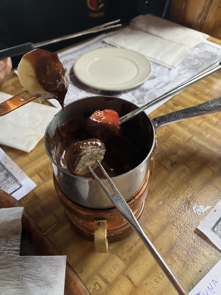 In the town of Banff itself, my family and I usually walk the main boulevard, checking out all the shops along the way and testing our IQs on the bear-proof garbage cans. We saw an elk in town this time around, too. One of our favourite restaurants in town is Grizzly House, a meat-lover’s paradise for hot rocks and fondue dining which I highly recommend getting a reservation to, unless you don’t mind waiting an hour for a patio table. The Fudgery is a notable sweet shop nearby for how the workers make their goods right in the front window for all to see. There’s also the Banff Museum, which has been closed every time I’ve been in the area with time to spare, so I’ve never been but I’ve heard good things. And if you’re not familiar with Canada, I recommend Beaver Tails as your official Canadian dessert intro.